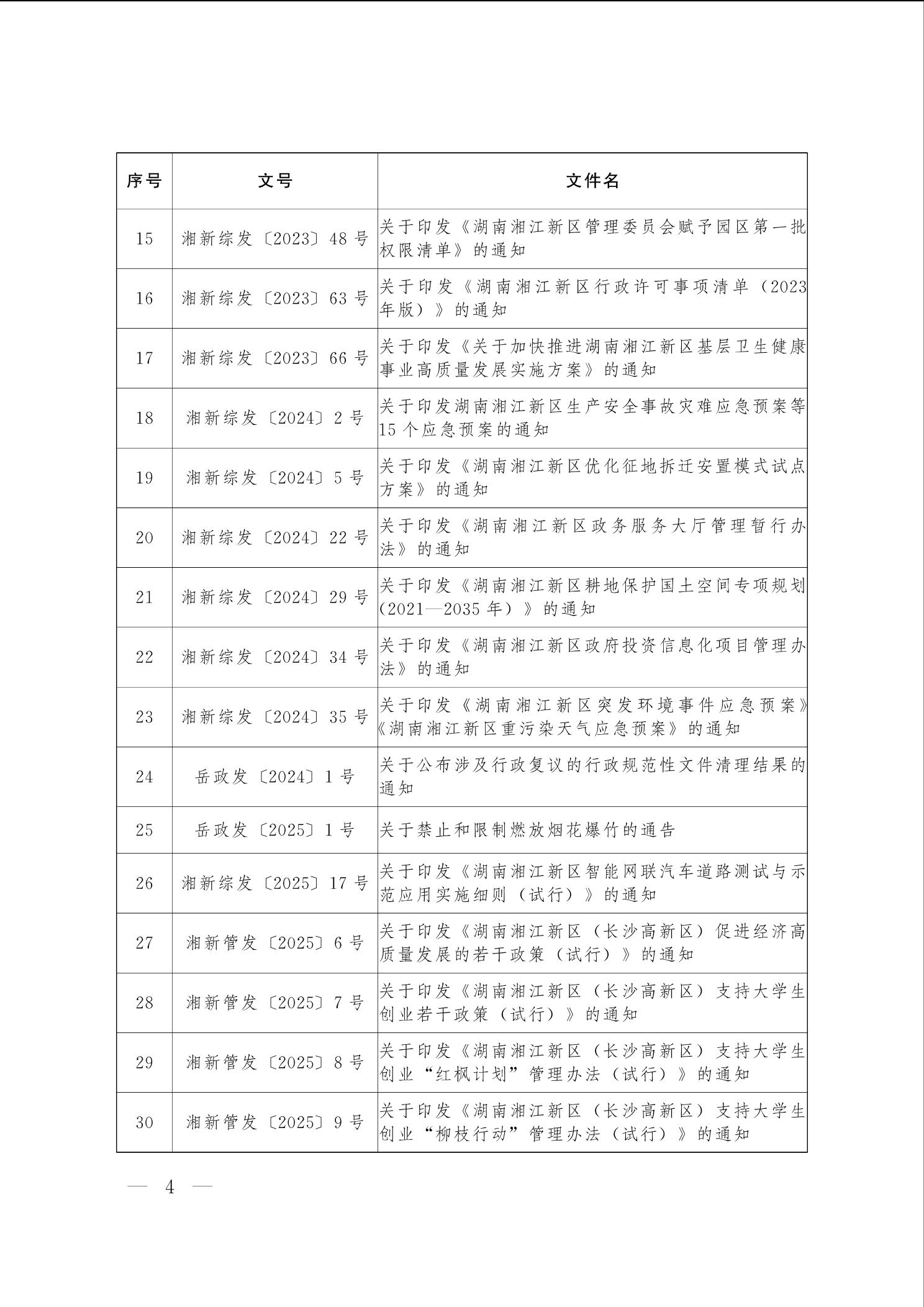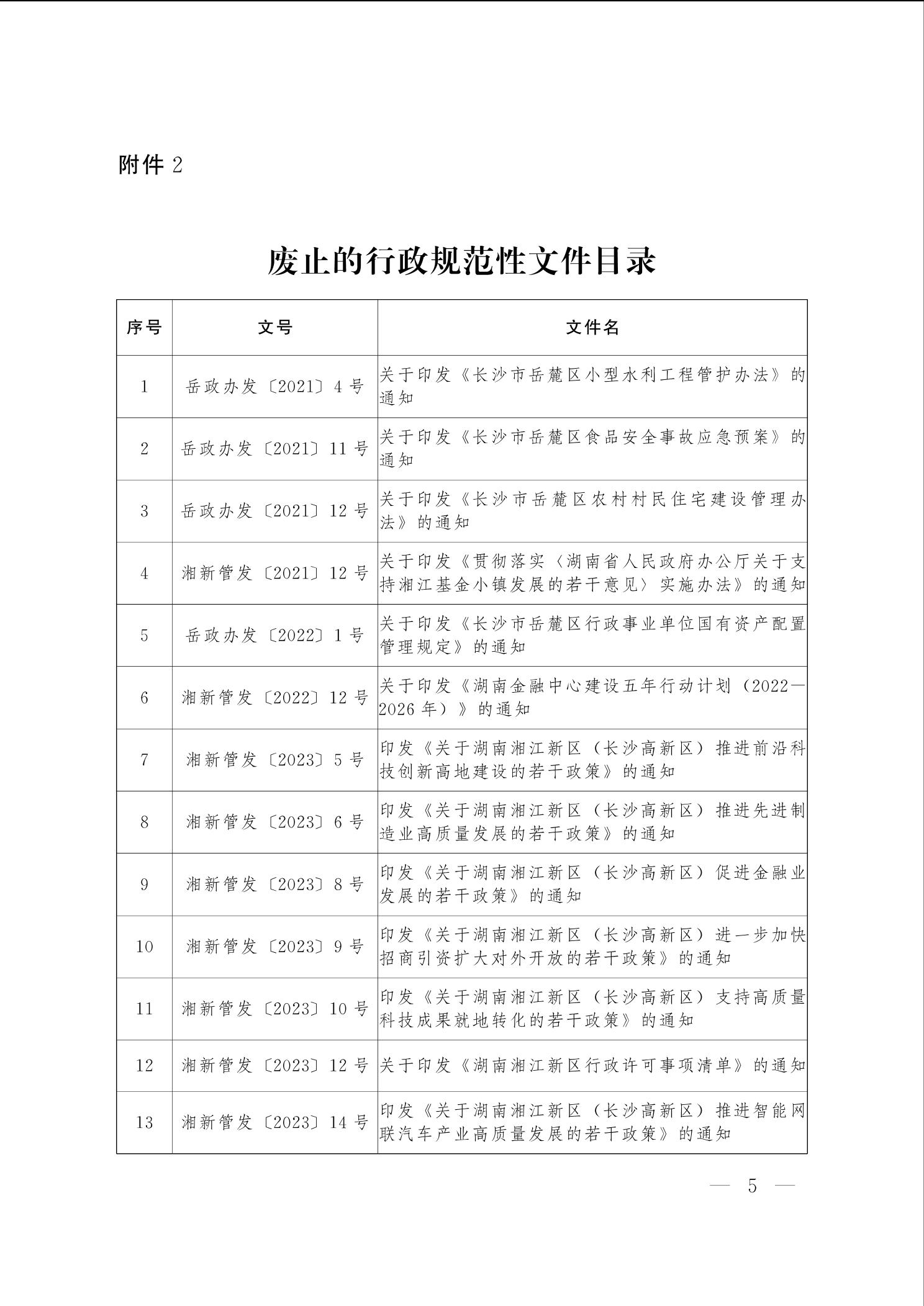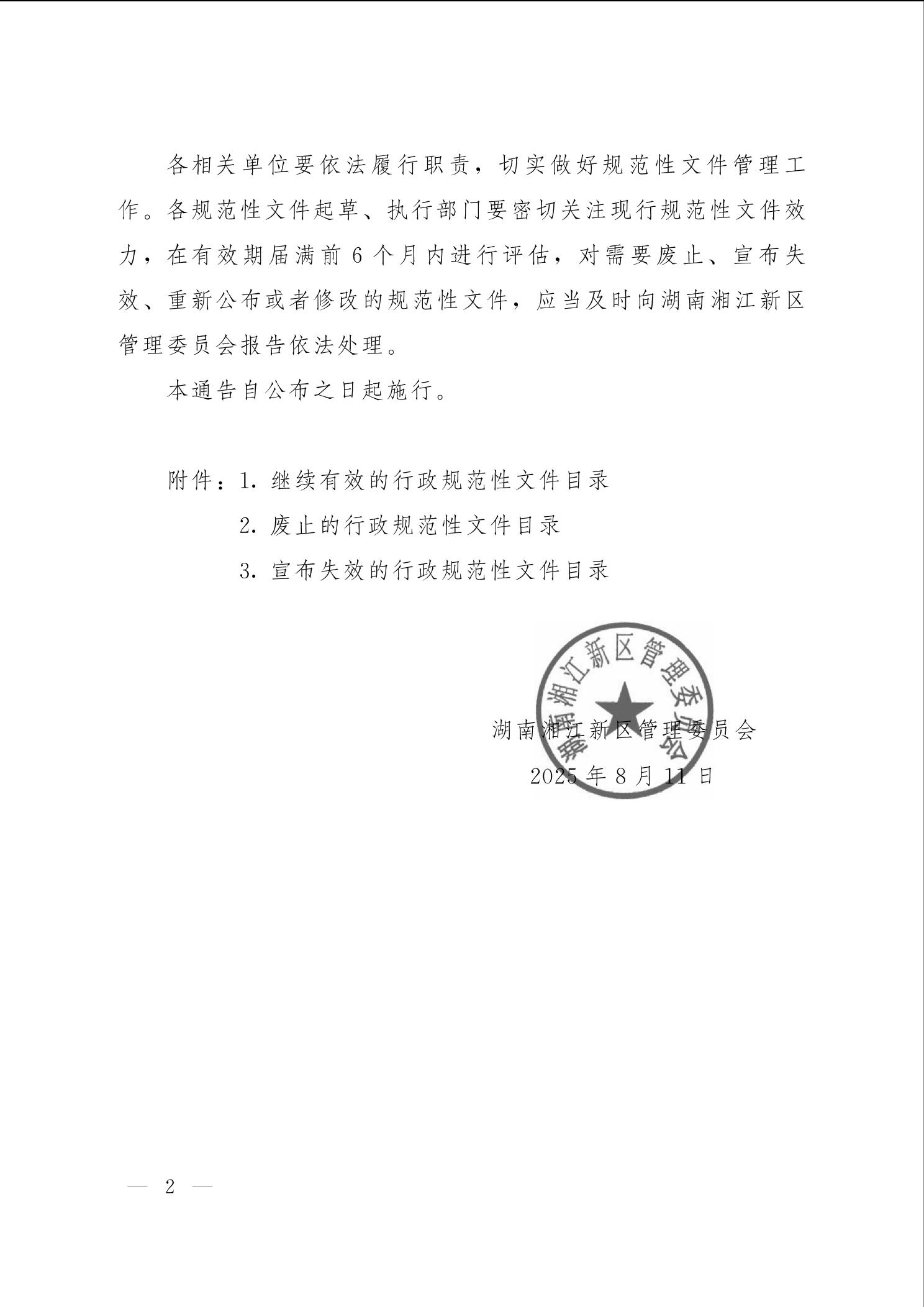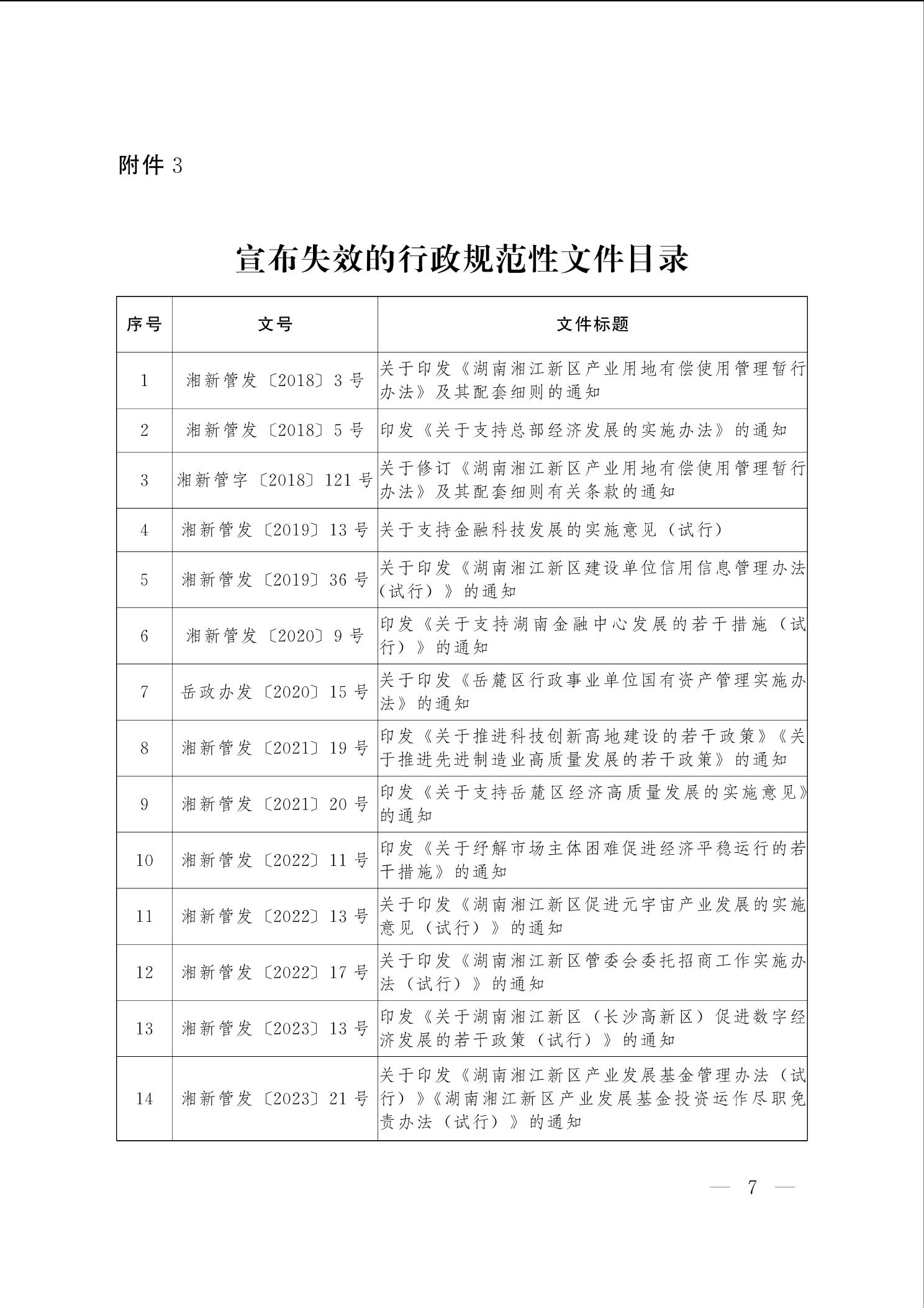 湖南湘江新區管理委員會關于清理行政規范性文件的通告