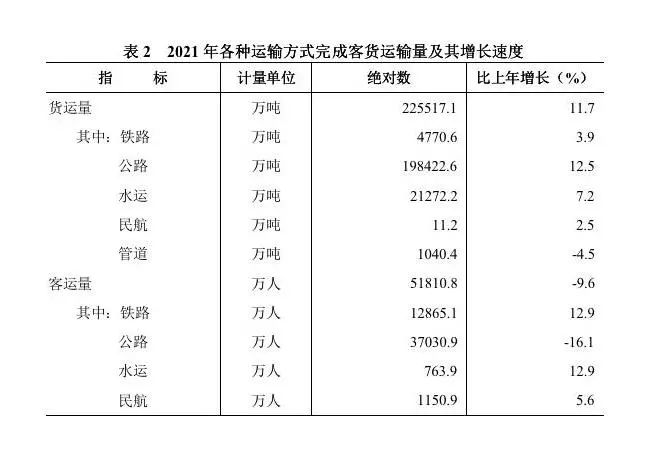 全年客貨運輸換算周轉量3608.3億噸公里,比上年增長10.6%。貨物周轉量2915.9億噸公里,增長11.3%。其中,鐵路周轉量986.9億噸公里,增長15.2%;公路周轉量1461.2億噸公里,增長8.2%。旅客周轉量1013.3億人公里,增長3.4%。其中,鐵路周轉量660.6億人公里,增長8.7%;公路周轉量195.4億人公里,下降13.1%;民航周轉量155.7億人公里,增長6.9%。