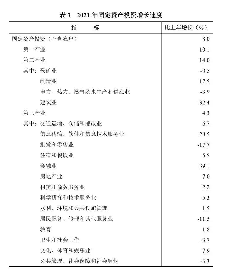 全年固定資產投資(不含農戶)比上年增長8.0%。其中,民間投資增長9.6%。分經濟類型看,國有投資下降5.1%,非國有投資增長12.9%。分投資方向看,民生工程投資下降3.8%,生態環境投資增長3.9%,基礎設施投資增長3.6%,高技術產業投資[10]增長15.6%,工業技改投資增長17.5%。分區域看,長株潭地區投資增長7.3%,湘南地區投資增長7.5%,大湘西地區投資增長6.2%,洞庭湖地區投資增長9.5%。