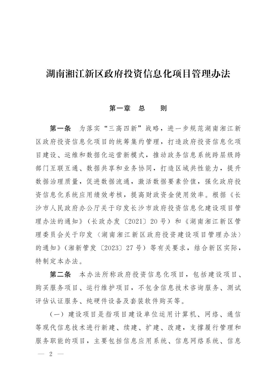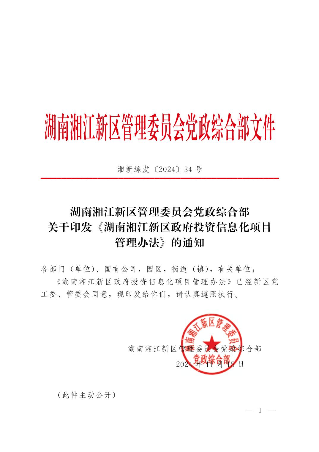 湖南湘江新區管理委員會黨政綜合部關于印發《湖南湘江新區政府投資信息化項目管理辦法》的通知